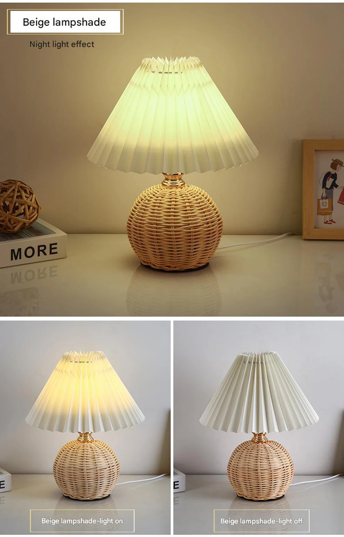 The modern minimalist rattan base(Hand-woven) lamp base and pleated fabric shade make your room look more unique and impressive. This bedside lamp can also be a lovely decoration for your bedroom or living room.
